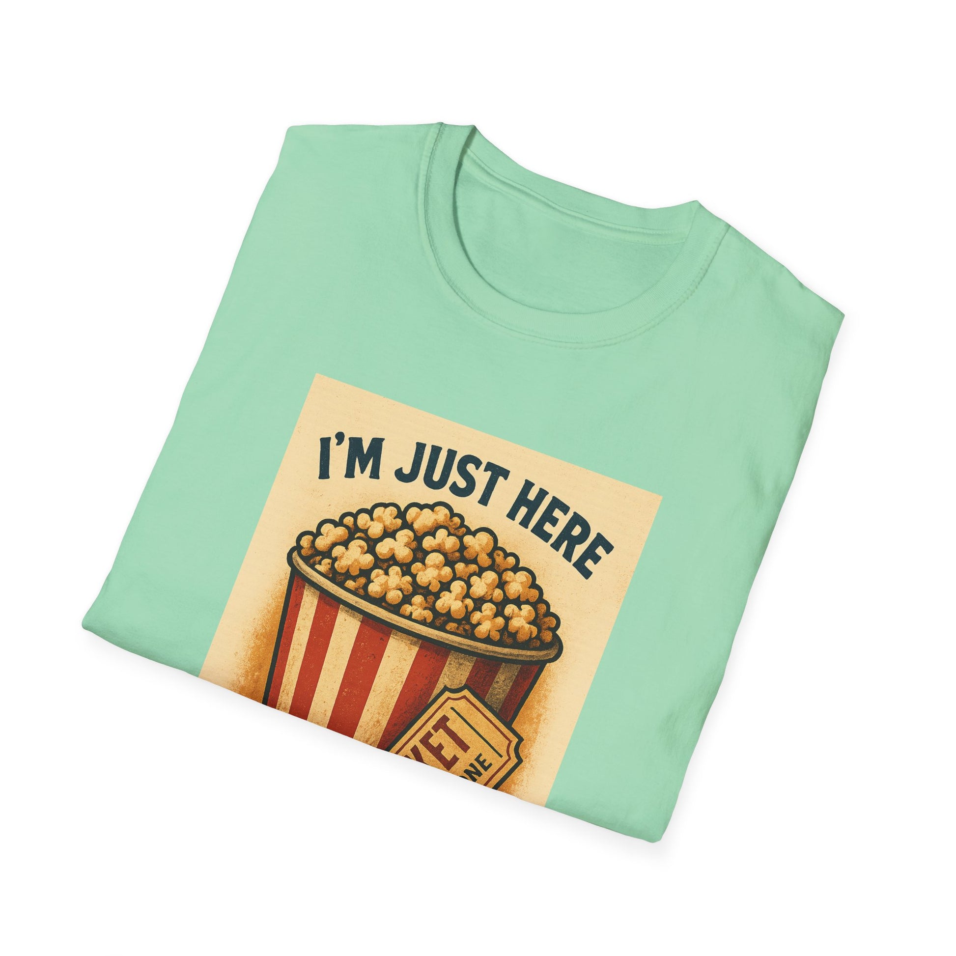 I’m Just Here for the Popcorn Shirt – Funny Movie Night Tee – Retro Popcorn Bucket T-Shirt for Theater & Film Fans