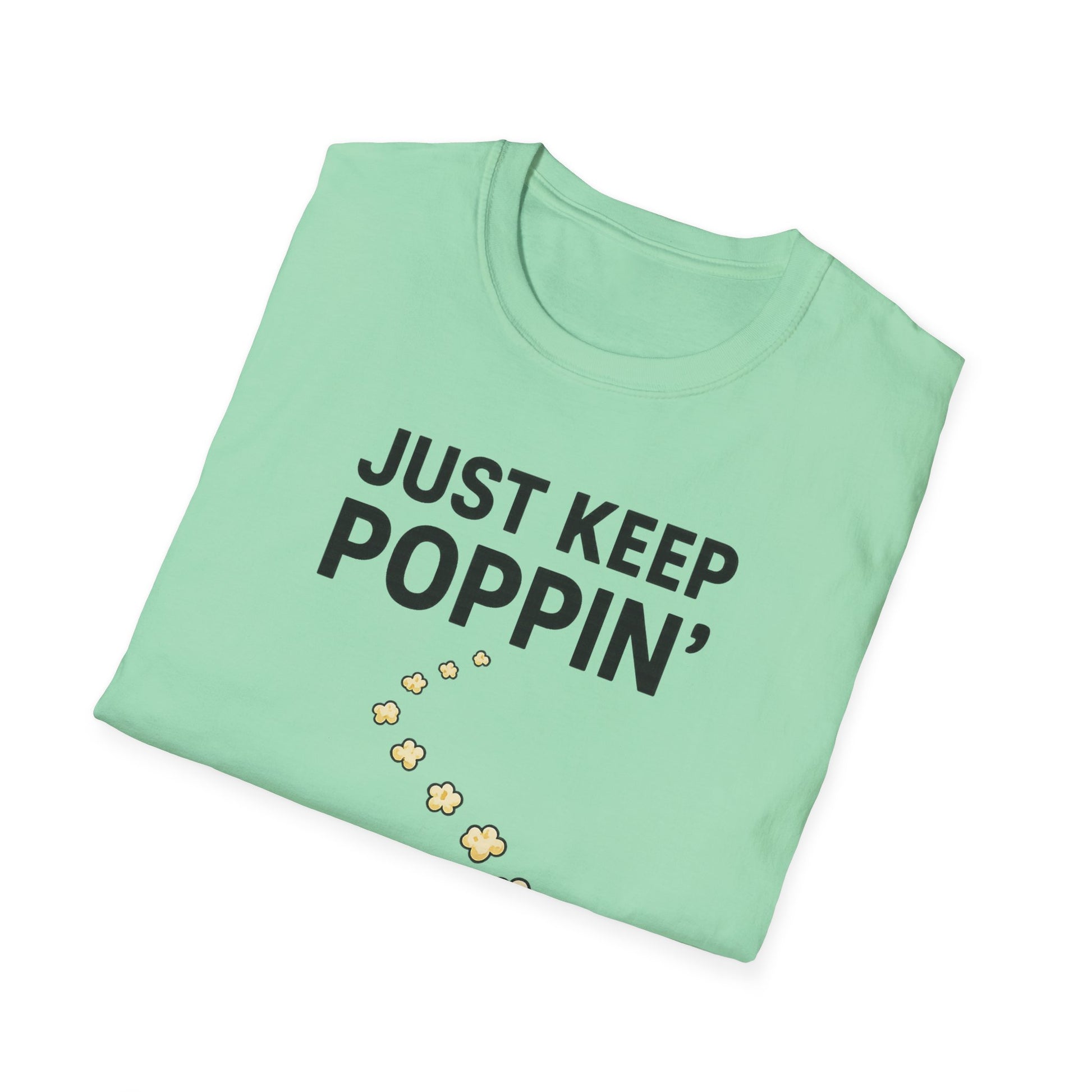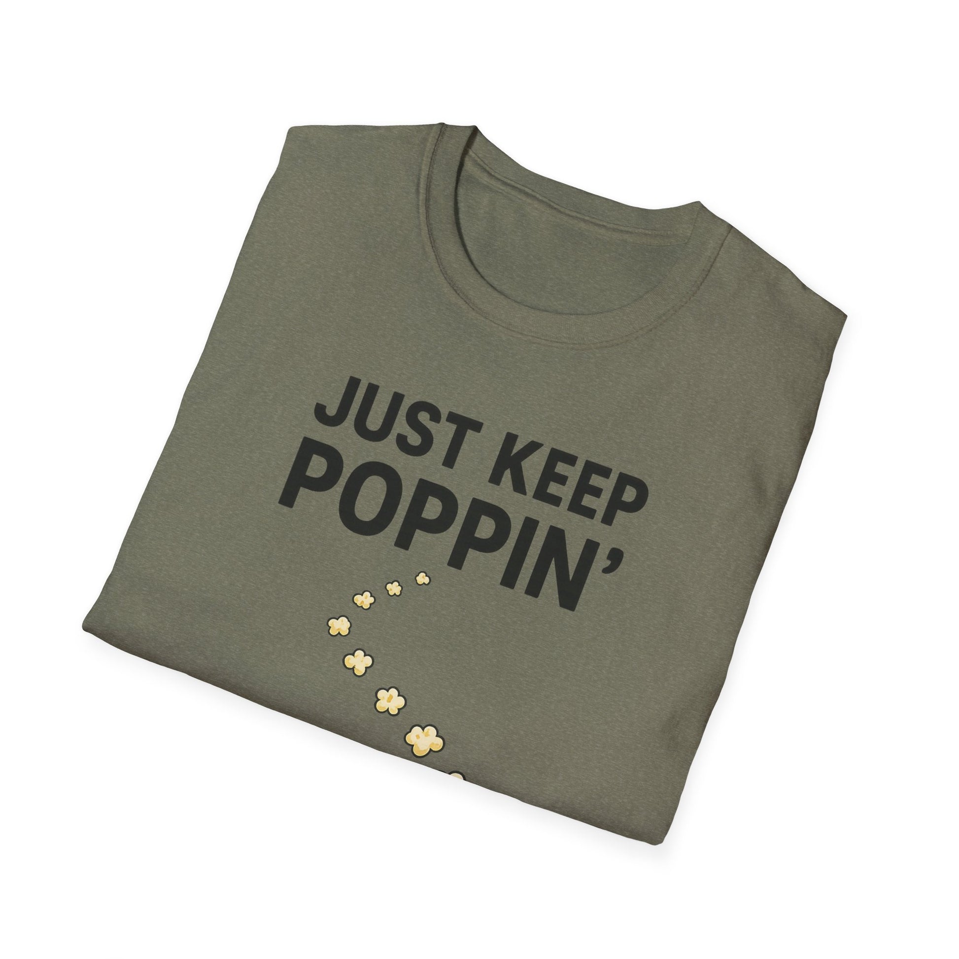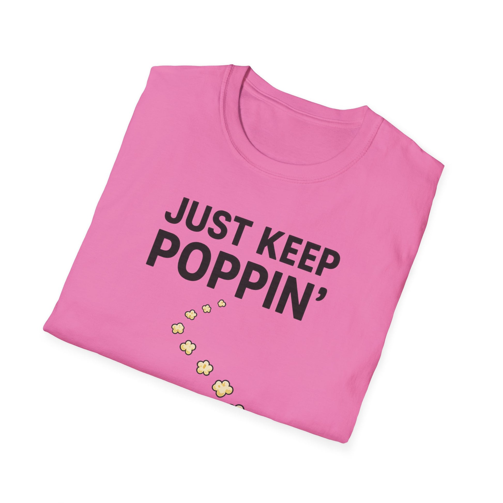 Just Keep Poppin’ Shirt – Funny Popcorn Lover Tee – Retro Movie Night T-Shirt for Snack Fans & Cinema Lovers