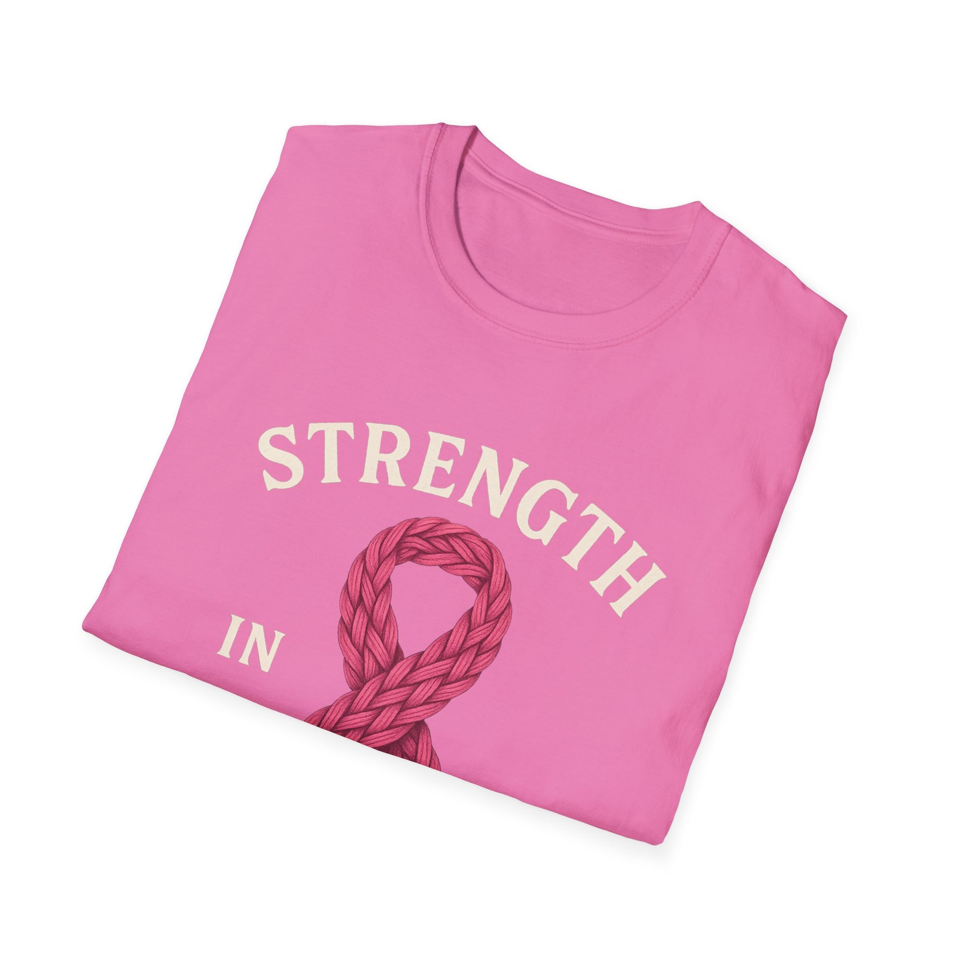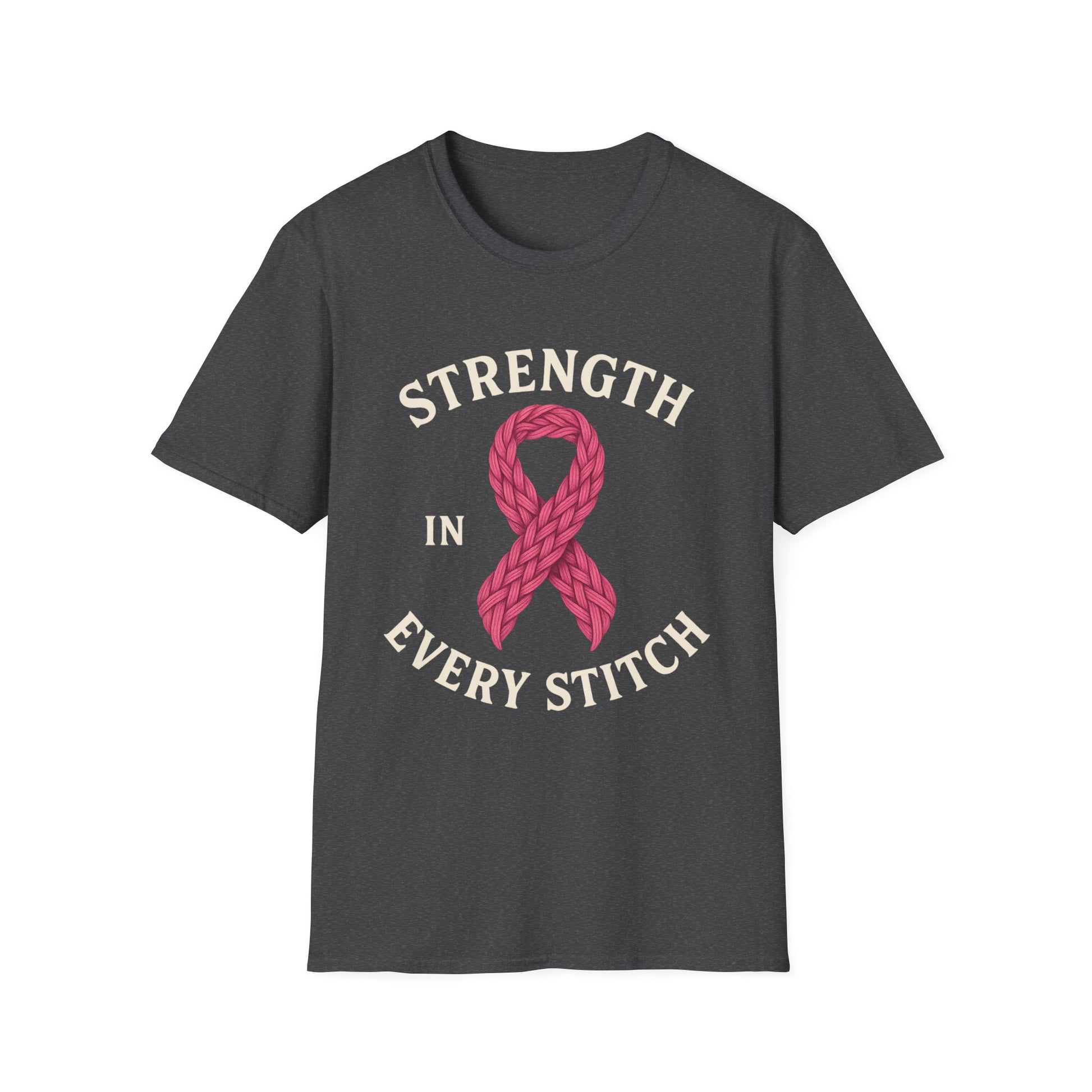 Strength in Every Stitch Shirt | Breast Cancer Awareness Pink Ribbon Tee | Knitting Crochet Support Survivor Fighter T-Shirt